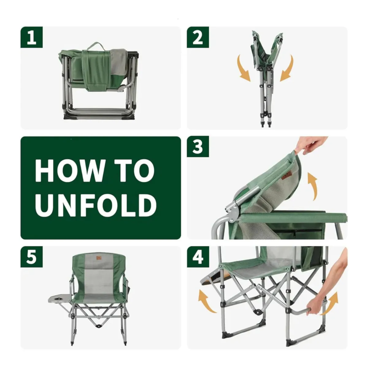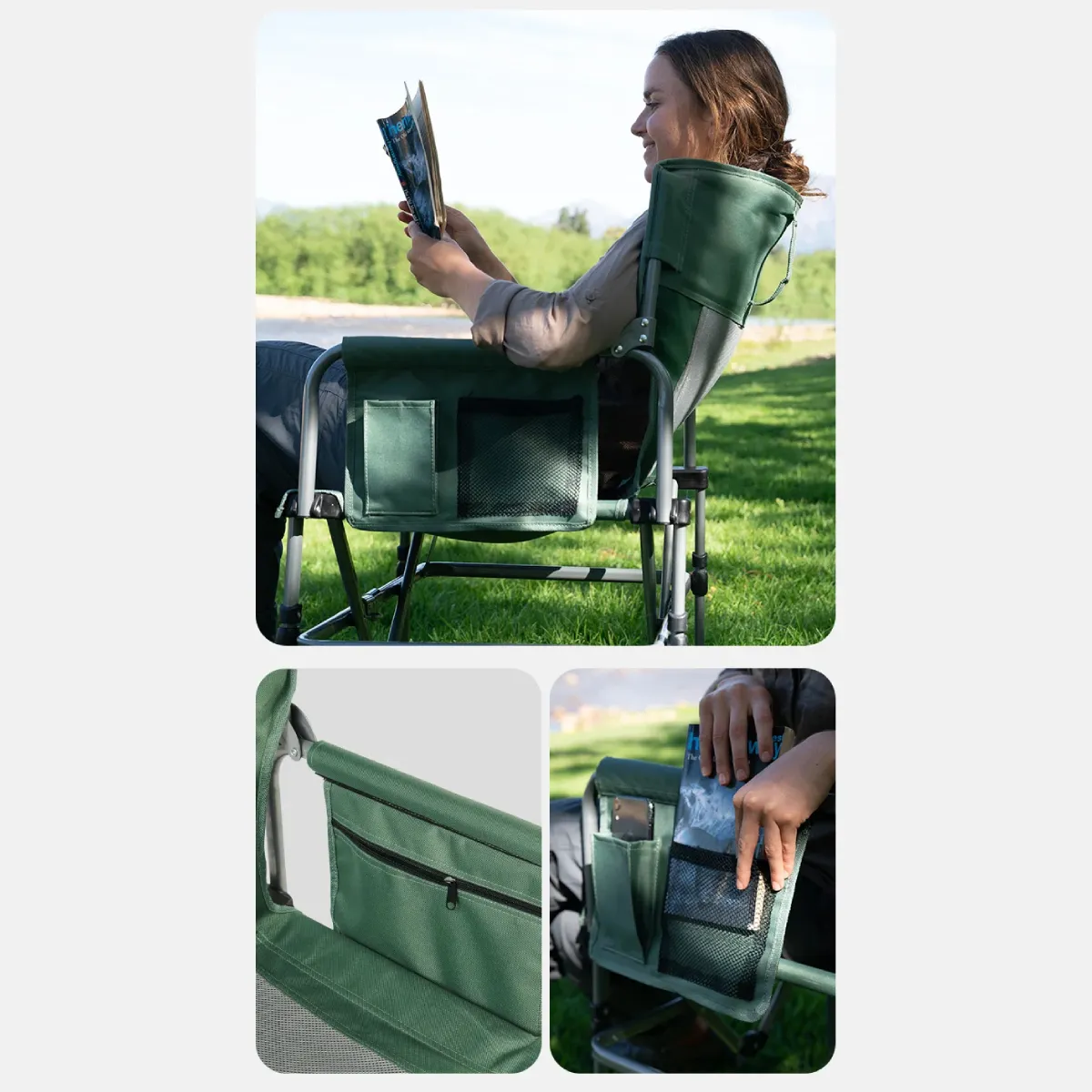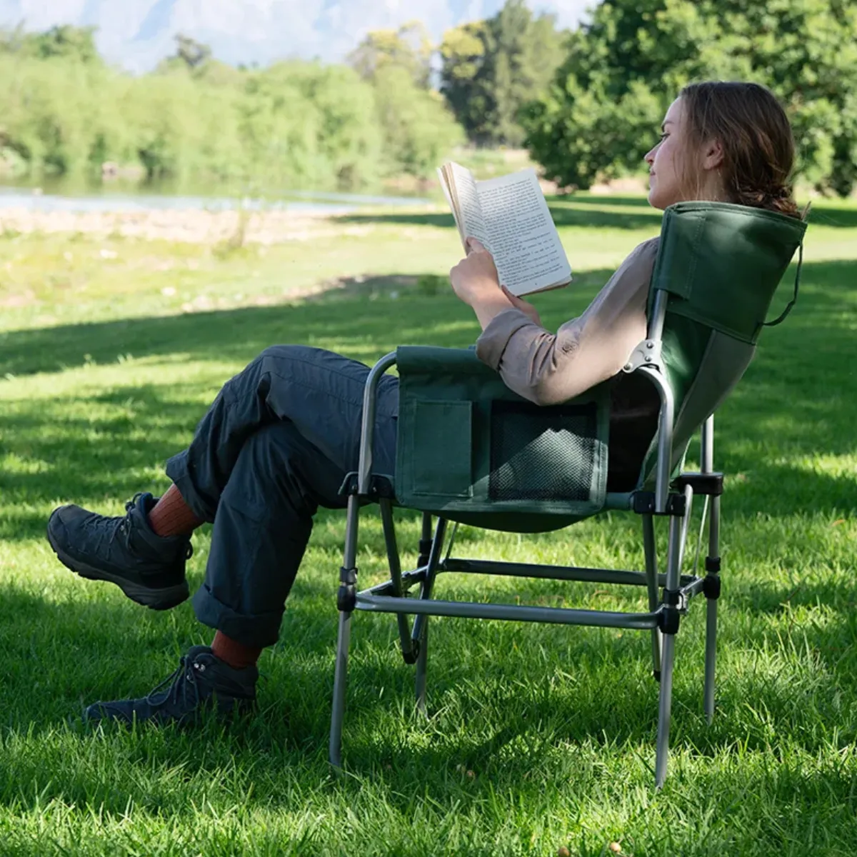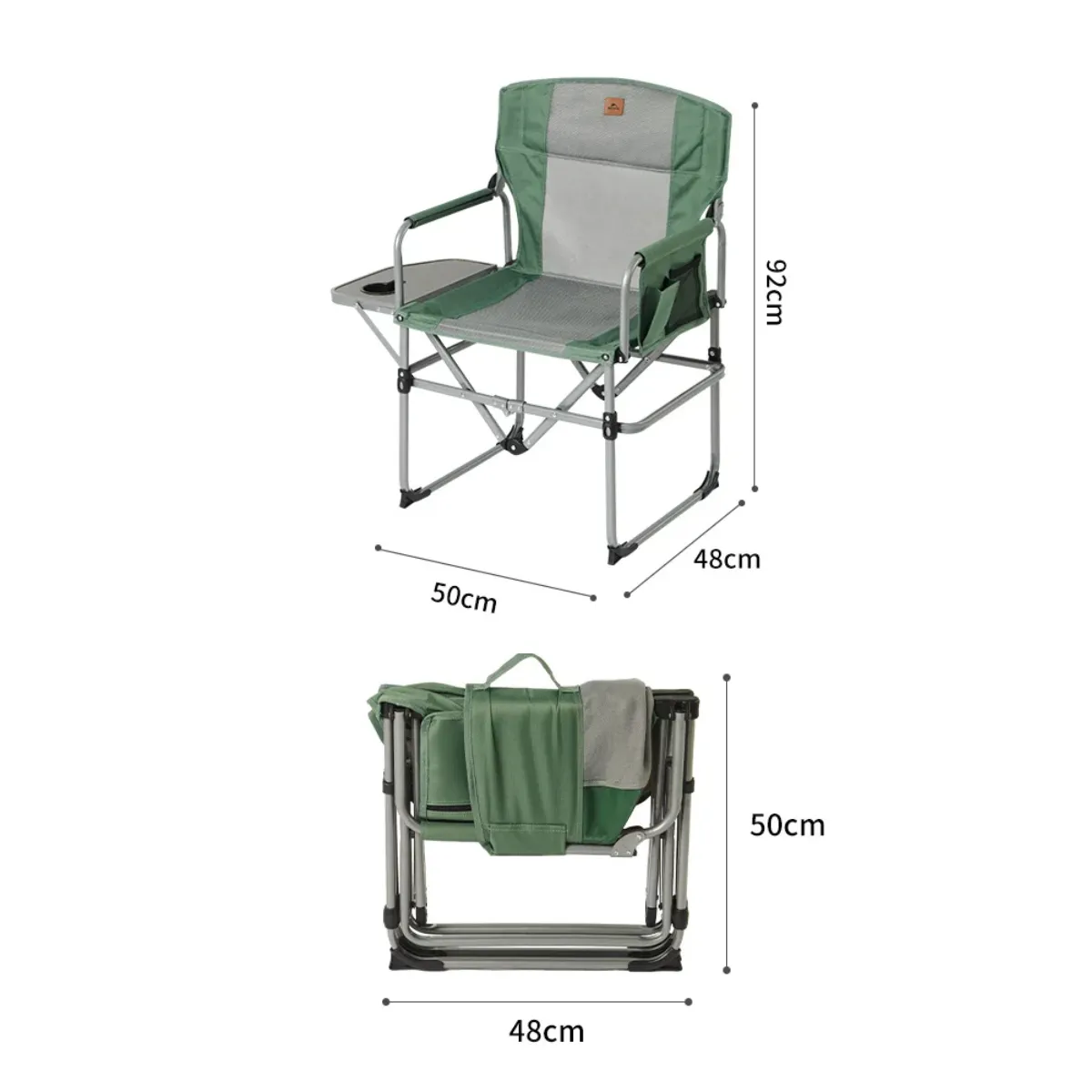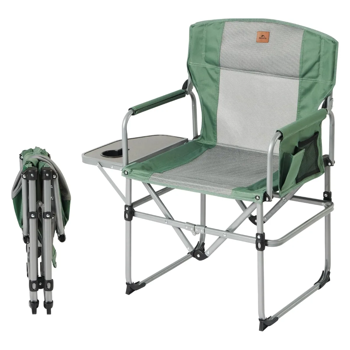 Esta silla de camping tipo director está pensada para brindar máxima comodidad durante todo el día, gracias a su mesa lateral con portavasos, bolsillos de guardado, y almohadones acolchados en el asiento y respaldo, que permiten tener todo al alcance sin sacrificar comodidad.