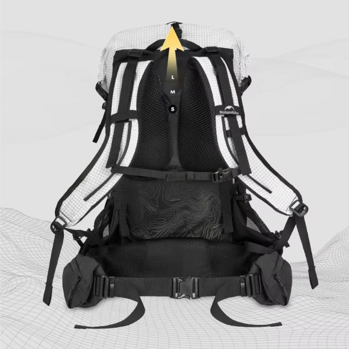 Mochila Naturehike de 30+5L de capacidad máxima, con material de Fibra de Poliamida que hace que sea impermeable. Esta mochila sigue la forma de tu espalda haciendo que viajar sea mucho más cómodo y reduciendo el riesgo de lesiones. El material antidesgarro y el método de plegado regulable ajustan el contenido de la mochila.