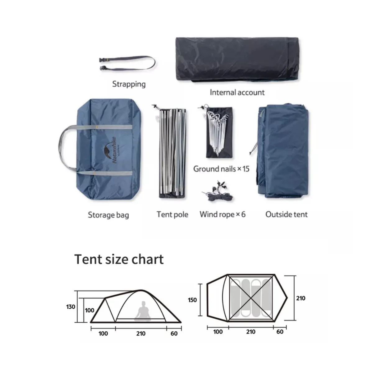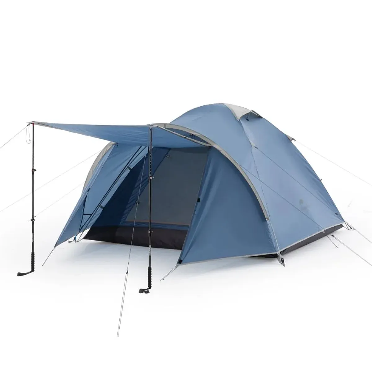 Carpa práctica y confiable, pensada para viajeros y amantes del aire libre. Su diseño espacioso permite alojar cómodamente a tres o cuatro personas. En el interior cuenta con un gancho para colgar una linterna, ideal para las noches de campamento.