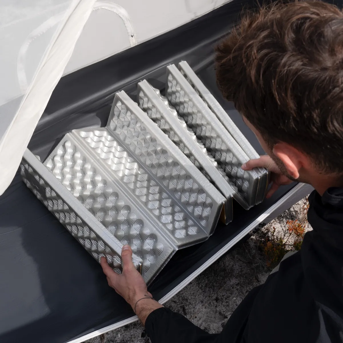 Aislante plegable de espuma ultraliviano. Presenta una forma de acordeón compacta con hoyuelos que atrapan el calor. Una opción ideal para travesías de larga distancia y desafíos en la naturaleza. Su superficie de espuma IXPE ofrece gran resistencia y una amortiguación excepcional.