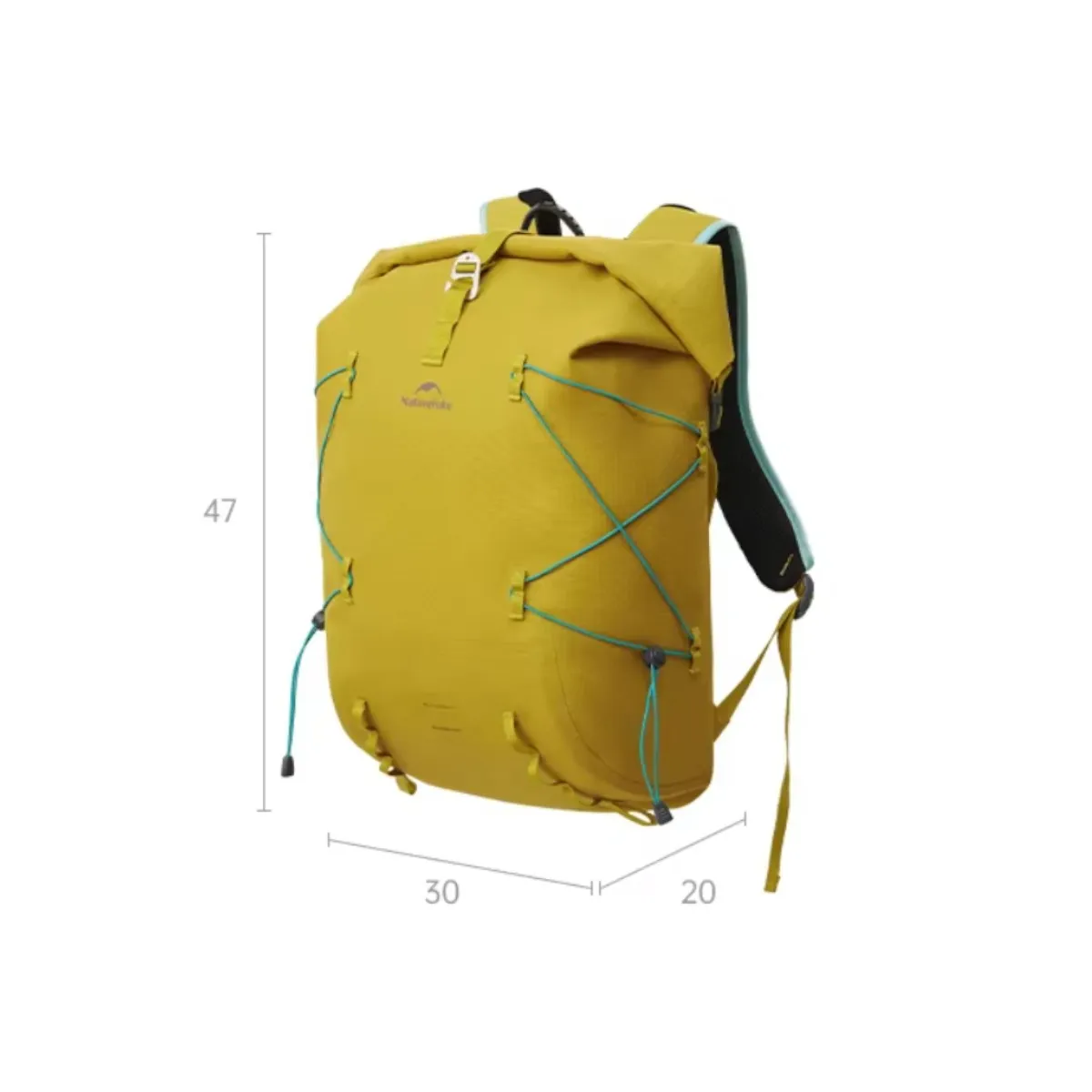 Mochila estanca de 28 litros con un grado de impermeabilidad IPX7, con un espaldar cómodo y ventilado.